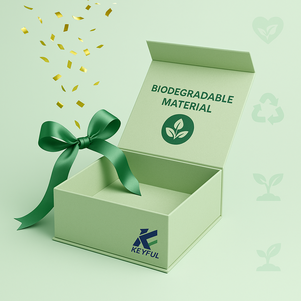 隨著可持續性不再是一種趨勢,而是一種必需品,可生物降解材料已成為奢侈品包裝的必需品。在深圳凱峰新材,我們正在開發為可折疊禮品盒量身定制的創新解決方案: